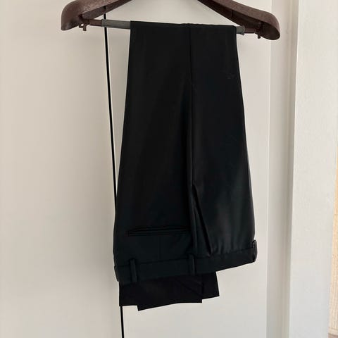 Sorte smokingbukser fra asos. Størrelse 31 og aldrig brugt. Skinny fit. Passer til en der er meget slank. Kan evt. også bruges af kvinder