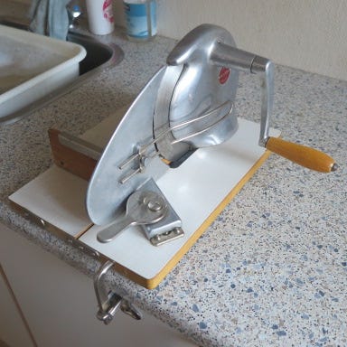 AFFETTAT. VOLANO300 manuelt udskærer i stål, designet af amitek, fremstillet i Italien, periode 1990-2000, i god brugt stand med få aldersmærker, højde 70 cm, bredde 60 cm, dybde 40 cm. Klik på den blå "gå til varen" knap, for at købe eller byde på denne vare. Den samlede pris vil blive vist inden du afgiver dit bud.