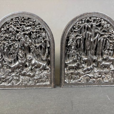 Ornamental arkitektonisk Ganesh, træpanel fra Indien (Rajasthan) fra seneste halvdel af 1800-tallet til begyndelsen af 1900-tallet, 26,5 × 22 × 4,5 cm, 1,7 kg, i pænt stand. Klik på den blå "gå til varen" knap, for at købe eller byde på denne vare. Den samlede pris vil blive vist inden du afgiver dit bud.