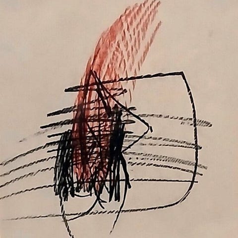 Signaturen er hurtig men sikker, typisk for den sene Carena, med en strukturerende blæktegning, der definerer volumenerne, beriget med akvarelstrøg i jordnære og grønne nuancer. Figurerne, selvom de er forenklede, fremstår solide og plastiske, hvilket bekræfter kunstnerens interesse for formel opbygning og monumentalitet, selv i de mest beskedne