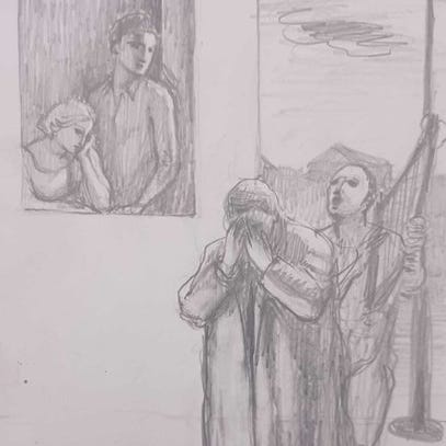 Opera på lærred af Maestro STEFANO DI STASIO, måler 13,5x21, uden titel, år 2001.