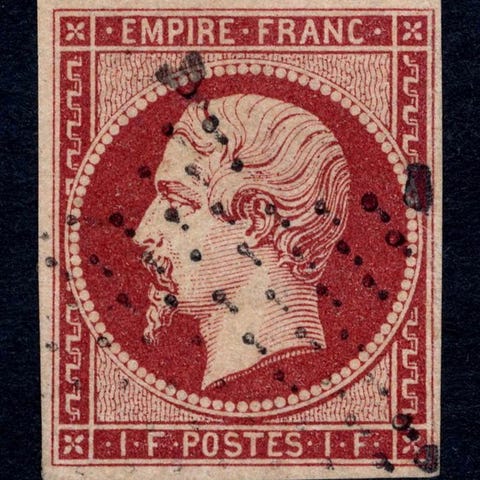 Fra Frankrig, Yvert 18 'Napoléon 1fr Empire' oblitéré, i fremragende stand, signeret Calves og med certifikat. Klik på den blå "gå til varen" knap, for at købe eller byde på denne vare. Den samlede pris vil blive vist inden du afgiver dit bud.