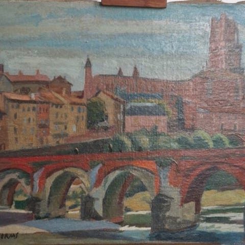 André Roubaud, Paysage provençal, oliemaleri, Original, 1960–1970, 77 × 62,5 cm, gyldent ramme, solgt med ramme, fremragende stand. Klik på den blå "gå til varen" knap, for at købe eller byde på denne vare. Den samlede pris vil blive vist inden du afgiver dit bud.