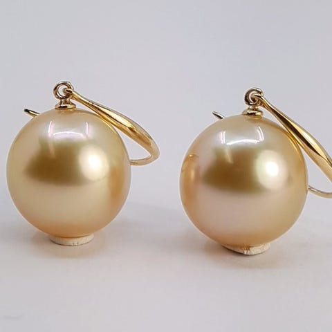 Produceret af den guld-læbefor Pinctada Maxima-østers i de varme farvande fra Australien til Indonesien, har disse perler en naturlig, fantastisk dyb gylden farve og ser smukke ud sammen med de gule guldkreoler.