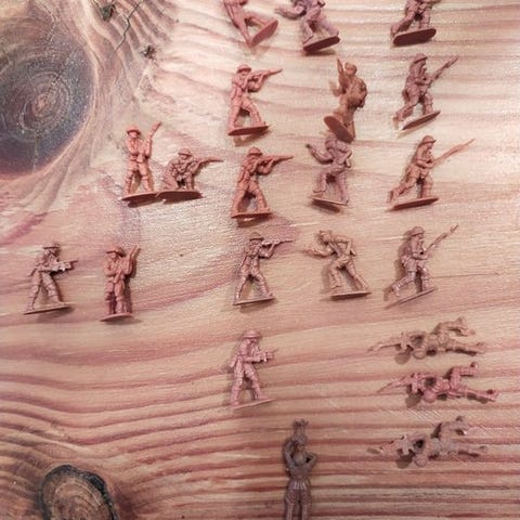 Jeg sælger 27 blysoldater (tynde) fra forskellige hære og 3 blysoldater (to i hel figur og én med basen) fra forskellige hære.