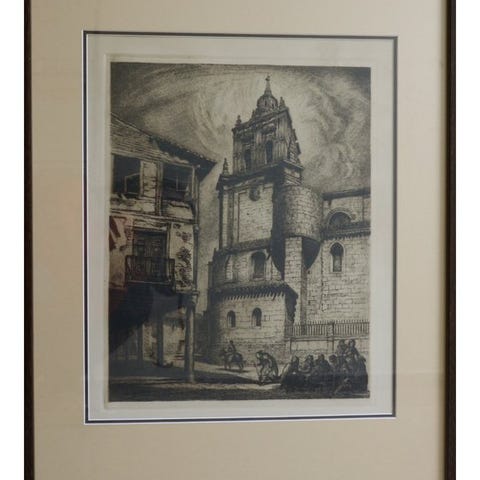 Usigneret aquafortetryk af Tomás Carlos Capuz, med titel SALAMANCA-LA CATEDRAL VISTA DESDE EL SEMINARIO, 1890, 47,5 × 56,7 cm, Spanien, det 19. århundrede, solgt med ramme. Klik på den blå "gå til varen" knap, for at købe eller byde på denne vare. Den samlede pris vil blive vist inden du afgiver dit bud.