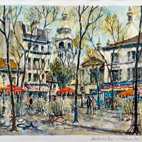 Guy Departe (1938) - Nuit - Aquarelle originale signée