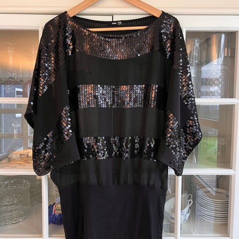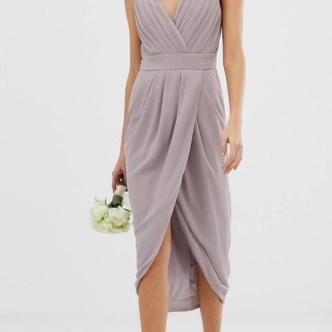 Flot kjole fra TFNC London, str. M. Drapering ved brystet, plisseret underdel. Aldrig brugt, stadig med mærke. Sælges for 250 kr. pp