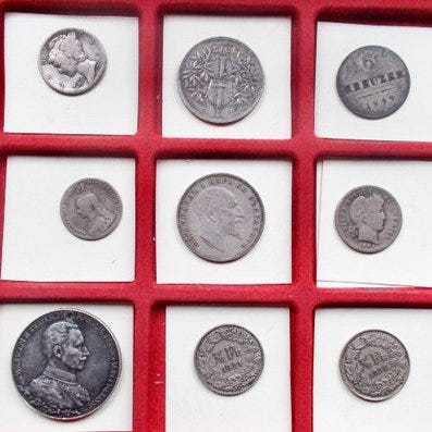Femtien militære badge- og mønter fra Italien, herunder tre sølvmønter, af bronze og sølv, uden vurdering. Klik på den blå "gå til varen" knap, for at købe eller byde på denne vare. Den samlede pris vil blive vist inden du afgiver dit bud.