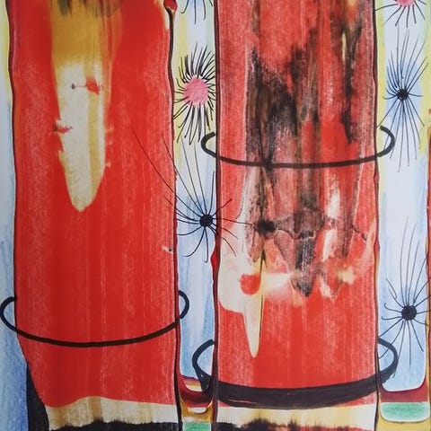 Dette blandede mediemaleri er af Robbert Fortgens (1960). Fortgens blev født i Utrecht, studerede på Rietveld Akademiet i Amsterdam og bor og arbejder i øjeblikket i Antwerpen. I sit tidlige værk var han inspireret af fotografisk realisme, men efter at have set Willem de Koonings værker i 1988, foretog han en radikal kunstnerisk drejning mod abstrakt ekspressionisme. Karakteristisk for hans modne arbejde er fusionen af maleri og fotografi: to tilsyneladende modstridende discipliner, som han forener i et enkelt visuelt sprog. Ved at lege med maling, fotografi og lagdeling udforsker Fortgens spændingen mellem perception og fantasi, hvilket resulterer i et rigt, tvetydigt og moderne