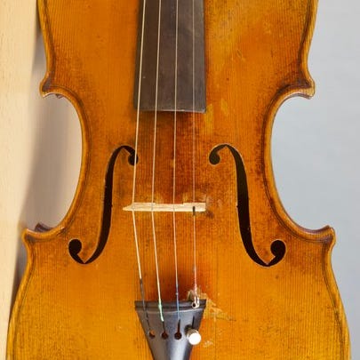 Violinen er i meget god stand, der er nogle små reparerede revner på toppen, men bagsiden er meget smuk og i perfekt stand!!!