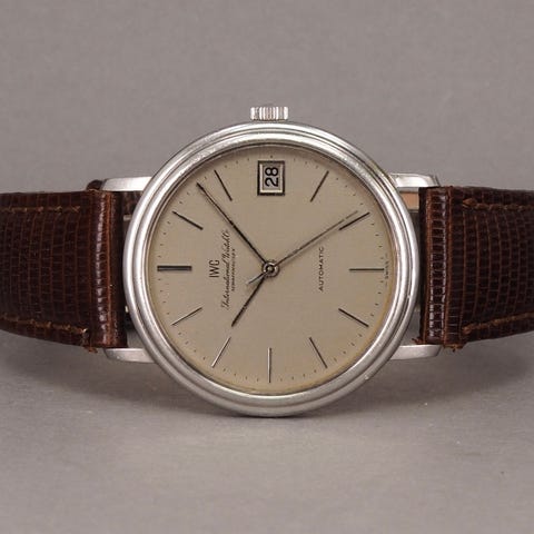 IWC dresswatch reference 1419, ca. 1964–1970, håndoptrukket urværk Calibre 402, kasse af rustfrit stål ca. 34 mm, lænke i stål, god stand med synlige slitage, ikke vandtæt, uden æske eller papirer, afsendt forsikret. Klik på den blå "gå til varen" knap, for at købe eller byde på denne vare. Den samlede pris vil blive vist inden du afgiver dit bud.