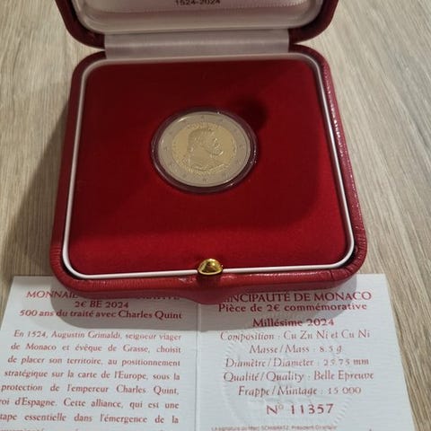 Monaco 2-euro mønt, 2023 Proof, til minde om prins Rainier IIIs fødselsdag, UNC. Klik på den blå "gå til varen" knap, for at købe eller byde på denne vare. Den samlede pris vil blive vist inden du afgiver dit bud.