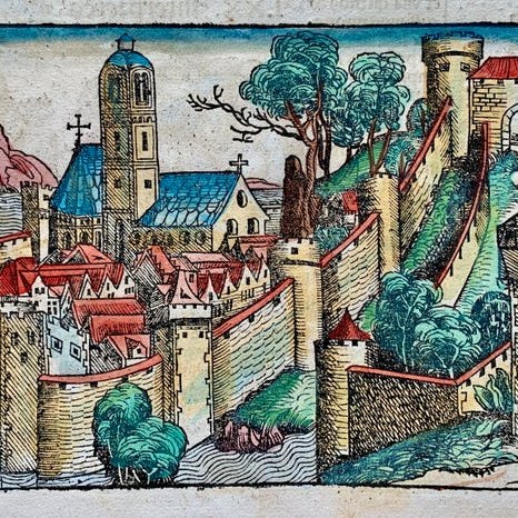 Nürnberg Chroniken (Liber Chronicarum) af Hartmann Schedel er en af de mest berømte og bedst illustrerede incunabula. De smukke træsnit blev lavet af Michael Wohlgemut (1434/37-1519) og hans stedfar Wilhelm Pleydenwurff (1450-1494), en lærer for Albrecht Dürer. Dürer bidrog sandsynligvis