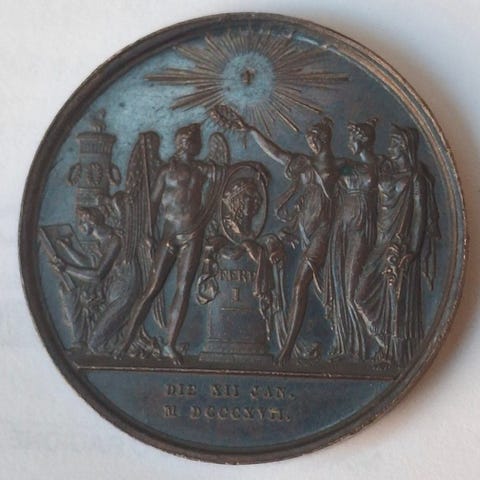Medaille 1836 i bronze. Ø 65 mm. Konception i Napoli. For fødslen af Dukaen af Calabria Francesco di Borbone. (Opus: Michele Laudicina og Andrea Cariello).