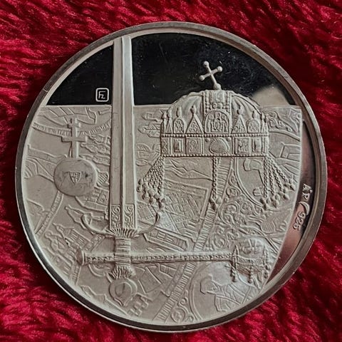 22 olympiske erindringsmedaljer i 999-sølv, hver ca. 50 g og 40 mm i diameter, præget i Spanien i 1988, hvoraf 19 er præsenteret i en grøn fløjelsæske og 3 i plastikcapsler, med et udstillingsskilt på 45 × 20 cm; begrænset til 1000 enheder, certifikat med autenticitetnummer 193/1000. Klik på den blå "gå til varen" knap, for at købe eller byde på denne vare. Den samlede pris vil blive vist inden du afgiver dit bud.