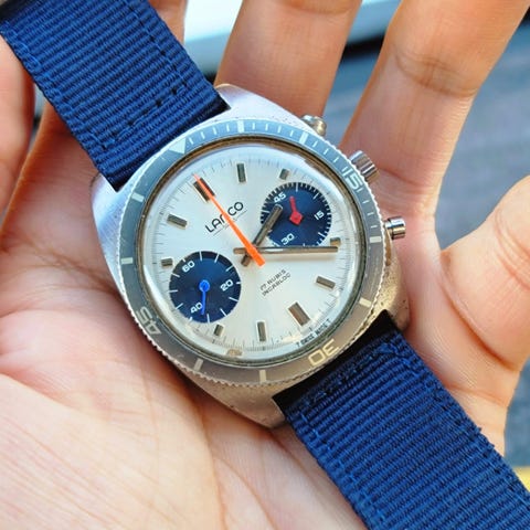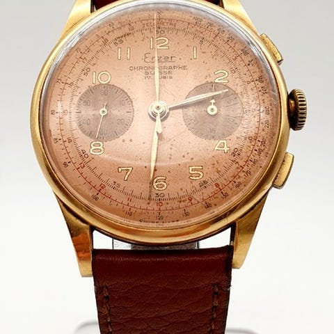 Sjælden lemania 105 kronograf fra slutningen af 50'erne i fremragende stand med original eftertragtet rød æske.