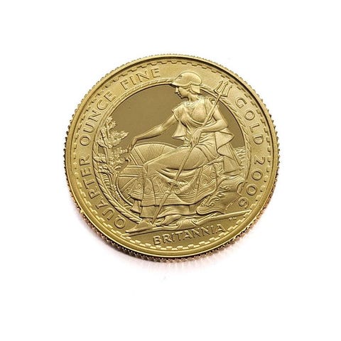 En 1/4 oz Britannia guldfyrkant fra The Royal Mint, Storbritannien, ægthed 999,9/1000, vægt 7,78 g. Klik på den blå "gå til varen" knap, for at købe eller byde på denne vare. Den samlede pris vil blive vist inden du afgiver dit bud.