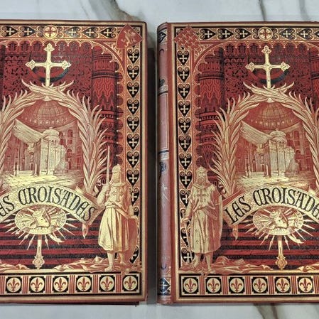 To bind, oversat to volumer af digtet Jérusalem Délivrée af Tasse, udgivet i Paris af Musier i 1774, fuld læderbinding med gyldne kanter og 700 sider med 14 gravuer uden for teksten og illustrationer af Gravelot. Klik på den blå "gå til varen" knap, for at købe eller byde på denne vare. Den samlede pris vil blive vist inden du afgiver dit bud.