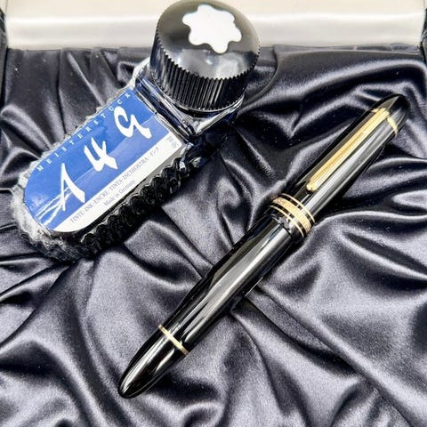 Fountainpenen fremstår i god stand med et generelt elegant og velholdt udseende. Kroppen af naturligt træ bevarer en attraktiv patina, med veldefinerede åretegninger og lette overfladiske tegn som følge af brug og tidens gang, uden sprækker eller strukturelle skader.