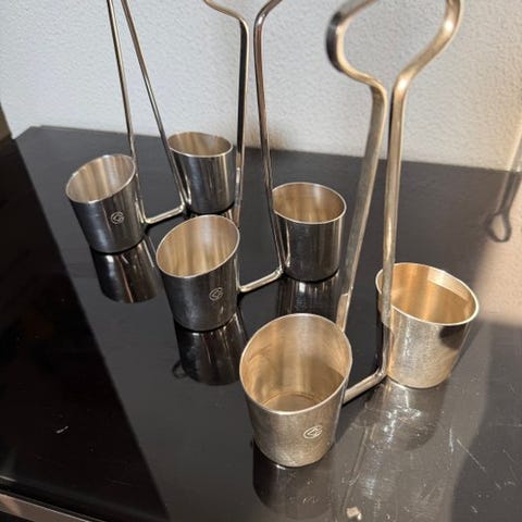 Champagneprop Talisman Sienna og åbne champagneflasker produceret af Christofle i 60'erne.