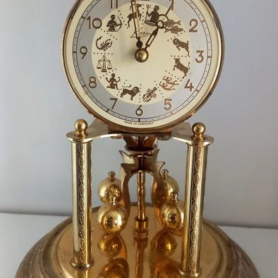 1930–1940 Art Deco mekanisk fugleur fra Tyskland, lavet af træ, jern og messing, med en-dags drivkraft og halvtime fløjt med gongslag, i god brugt stand og i gang, 51 cm høj, 34 cm bred, 19 cm dyb og vejer 3,5 kg. Klik på den blå "gå til varen" knap, for at købe eller byde på denne vare. Den samlede pris vil blive vist inden du afgiver dit bud.