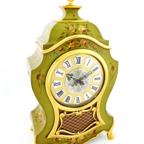 Jaeger-LeCoultre 8-dages forgyldet rejseklocke i grønt læderetui, ca. 1950–1960, med forkromet messingramme, i god og funktionel stand. Klik på den blå "gå til varen" knap, for at købe eller byde på denne vare. Den samlede pris vil blive vist inden du afgiver dit bud.