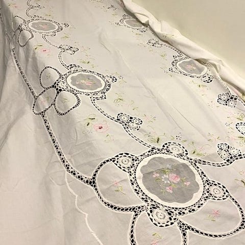 Gammelt bordtæppe og 14 servietter i damaskbomuld - Dug - 220 cm - 160 cm