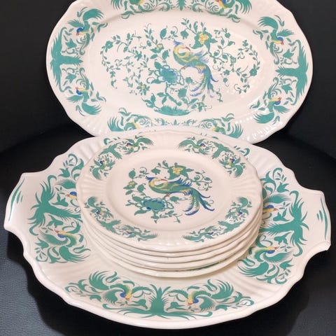 Kageplade eller rund præsentationsplade på 31 cm, pyntet med emaljemaling. Med et klassisk mønster passer denne plade perfekt sammen med eksisterende stel, men kan også fremstå som hovedpunktet i et sæt. Den tilføjer et præg af sofistikation ved kaffen og passer både til festlige borddækninger og til familiemåltider.