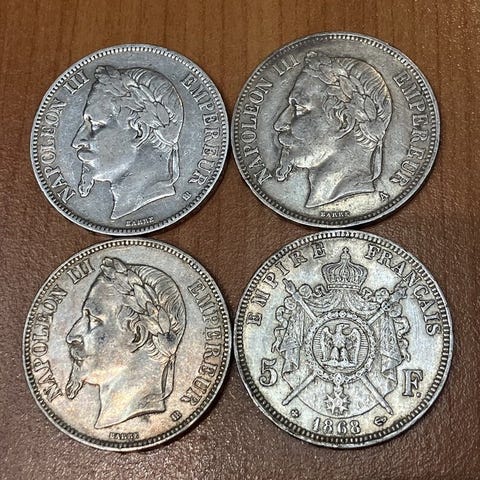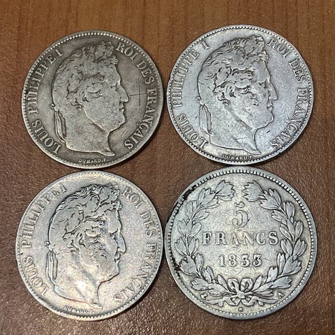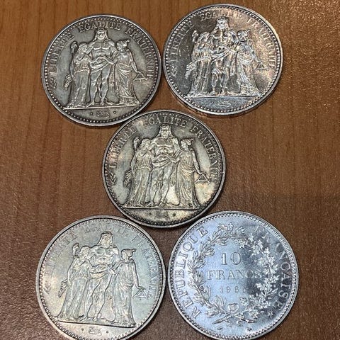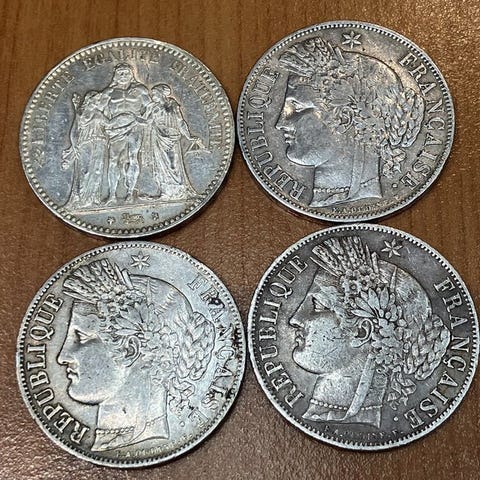 Frankrig. 5 Francs Hercule (lot de 4 monnaies en argent)