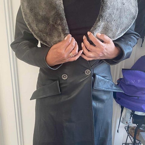 Bemærkninger: Da det er en specialfremstillet vare, har den ikke et størrelse- og sammensætningsmærkat. Farve: rød---Materiale: Eksotisk læder | Silke---Produktmål: Brystomfang: 62; Længde: 65; Ærme (Fra skulder): 61