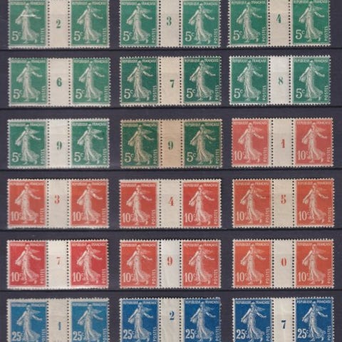 Komplet samling af franske frimærker fra caisse d'amortissement, de 5 serier med frimærkerne ’smil fra Reims’, franske provinser, arbejdet fra 1927 til 1931 i ny stand, både uden og med hæftning, og med god centrering.
