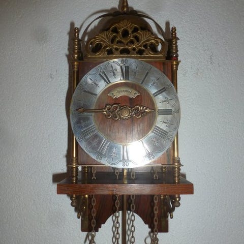 Meget sjælden rektangulær klippeborg-lommeklokke med vækkerur; slutningen af 1800-tallet / begyndelsen af 1900-tallet, den kører, fungerer, også vækkefunktion. Vækeren indstilles via det drejelige glas, uret har ved indstilling ved kronen en lille knap, som skal trykkes ned, hvorefter uret kan indstilles ved kronen. For at åbne uret er der på undersiden en lille knap, som også skal trykkes ned, hvorefter bagsiden kan åbnes. På den bageste låg af etuiet står følgende: Patentnr. 17104 og D.R.G.M. - Nr. 97674