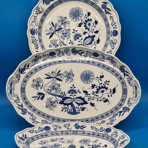 Prestigiøst Spode bordsæt – Model "Fleur de Lys Blue" (121 dele) som nye, aldrig brugt