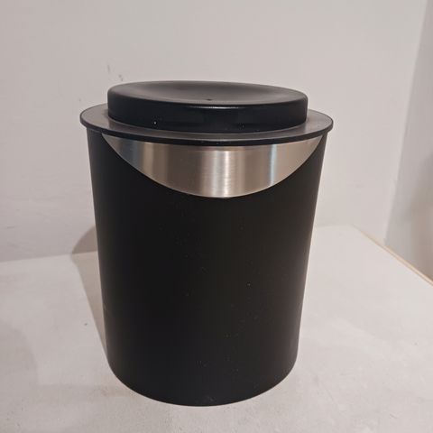 Eva Solo kaffedåse i sort med tilhørende metalske/måleske.