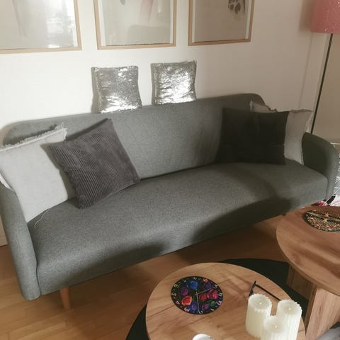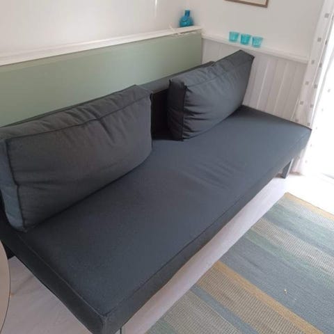 Ryglænet kan foldes ned, så det bliver til en flad seng.