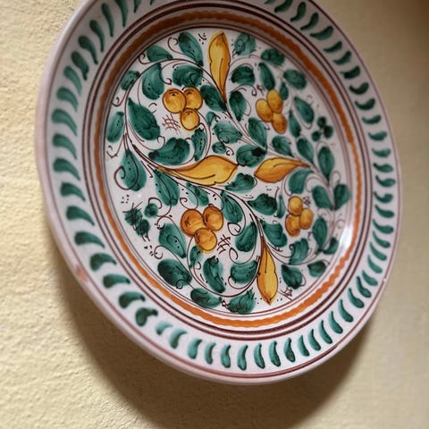 Garda ovalt keramikfad med fiskemotiv rød blå ca. 18 cm
