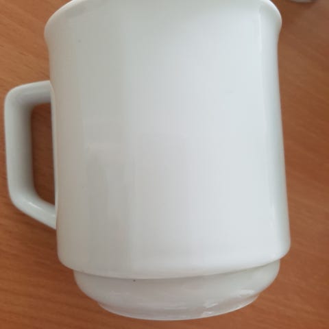 4 stk hvide krus med et forskelligt dyr inden i kruset sælges for 30 kr stk