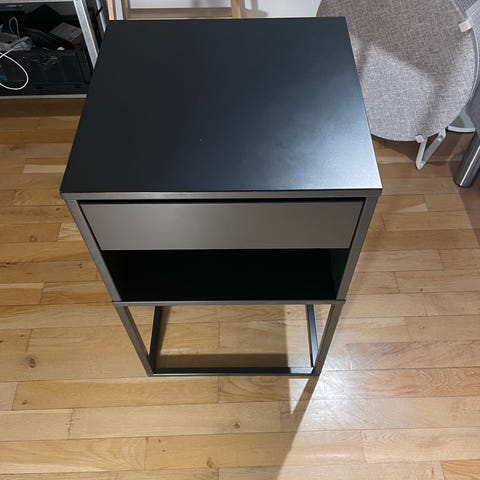 Elegant og moderne VIKHAMMER natbord fra IKEA, kun 1 år gammelt og i perfekt stand.