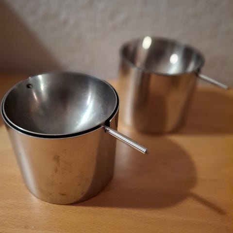 3 store og to små Stelton vippe askebægre. De store 140 kr og de små 100 kr stk