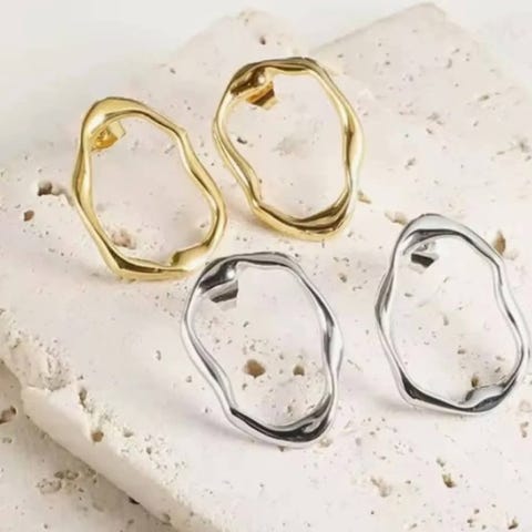 Iøjnefaldende og elegante øreringe sælges. De fåes i guldlook og passer til hverdag og fest.