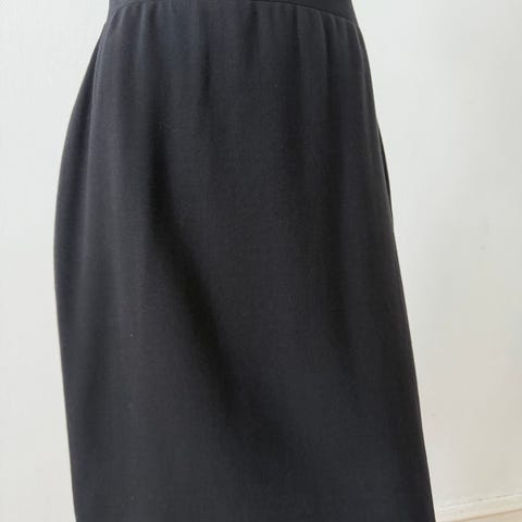Vintage Sonia Rykiel sort nederdel med elastisk talje. Velour. Nederdelen har en lige silhuet og en behagelig pasform. Brugt, alm brugspor, ingen defekter. Venligst tjek mål på billeder.