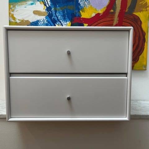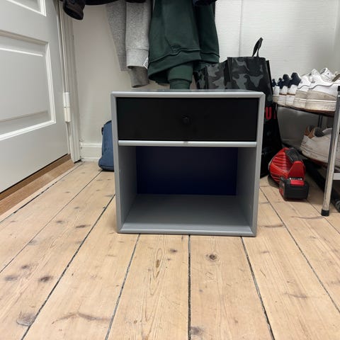 Smukt sengebord med ophængsbeslag fra Montana. Med det fine lille sengebord kan du opbevare dine vigtigste ting til natten i den medfølgende skuffe samt praktiske hylde. Sengebordet er ikke blot funktionelt, men også yderst stilrent og æstetisk, hvorfor det vil tilføre en smuk detalje til enhver indretning af soveværelset. Sengebordet er nem at montere på både væggen eller direkte på et Montana hovedgærde. Brug også bordet som en del af entreen til at opbevare sager, som er rare at have ved hånden, når man er på vej ud ad døren.