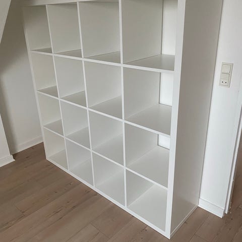 God reol. Hvid. Med to skabe og to skuffer. Inkl ben. 800 kr fra ny i Ikea. Kallax.