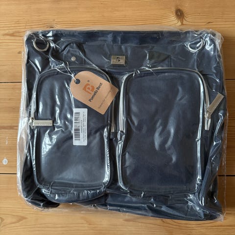 Der medfølger lang rem, barnevognsremme og pusleunderlag.