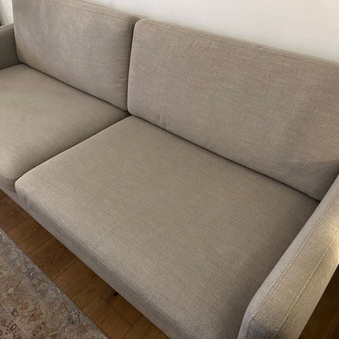 Bolia Scandinavia 2,5-personers sovesofa i lysegråt stof med egetræsben. Funktionel og stilren sovesofa i pæn stand.