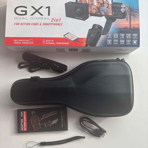 Gimbal til videooptagelser med mobiltelefon. Jeg ved stort set ikke hvad det er eller om den virker. Den ser fin ud og ligger i æske, dog uden stik mm. Hvis du kan bruge sådan en dims, så kig forbi.