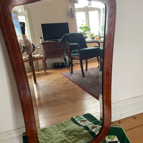 Super fint og robust spejl - kan både stå på gulvet eller hænge.