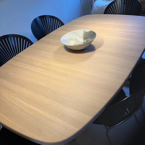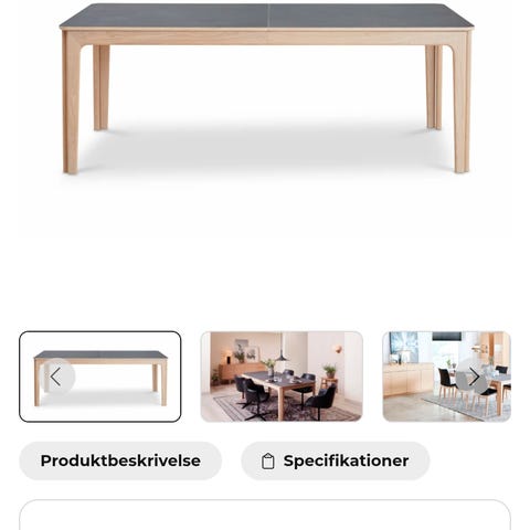 100 x 200 cm, plus 3 x udtræksplader (a 60 cm)