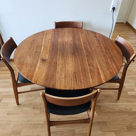 Rund snedkerfremstillet spisebord, massiv valnøddetræ